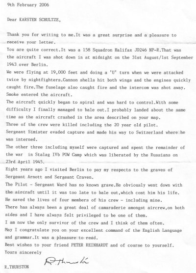 der Halifax JD246, NP-R. Weiterhin schickte er mir den Bericht über Harry Simister's Flucht in die Schweiz |