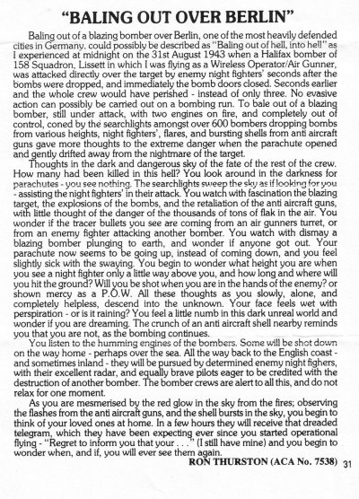 his expirience in Bomber Command. He also sends me the full report about Harry Simisters evasion to Switzerland. |